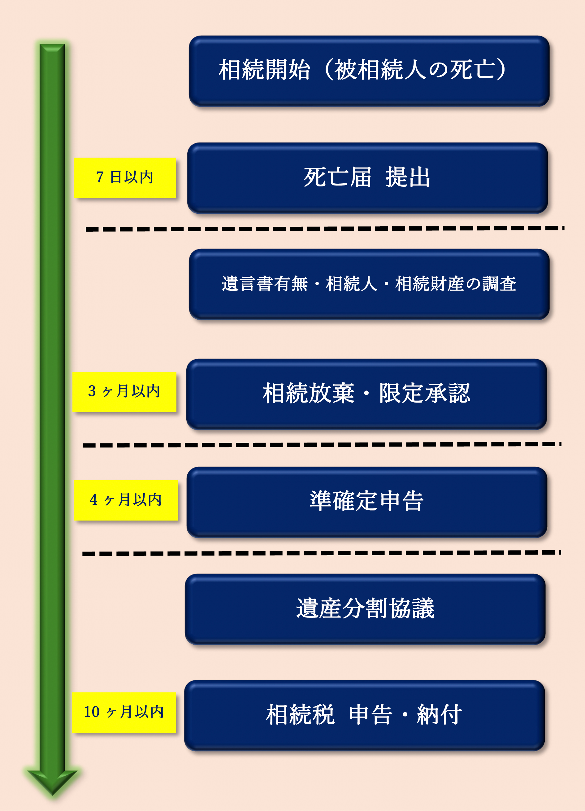 - 上記の通り、相続には複数の期限があり、最終的には10ヶ月以内に相続税の申告・納付までを行う必要があります。