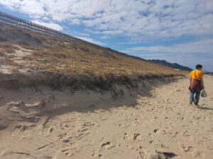 🟢砂の流出を防ぐために埋められた構造物が、地表にむき出しになっている箇所がある。